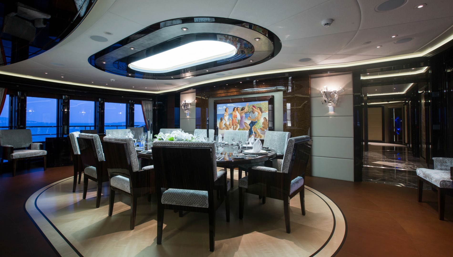 PERFORMANCE: Excellence V is built with Steel hull and Aluminium superstructure. As a displacement yacht, she is equipped with an ultra-modern stabilization system which reduces roll motion effect and results in a smoother more enjoyable cruising experience. She features ‘at anchor stabilisers’ which work at zero speed to increase onboard comfort at anchor and on rough waters. With a cruising speed of 13 knots, a maximum speed of 16 knots and a range of 5,000nm from her 160,000litre fuel tanks, she is the perfect combination of performance and luxury.