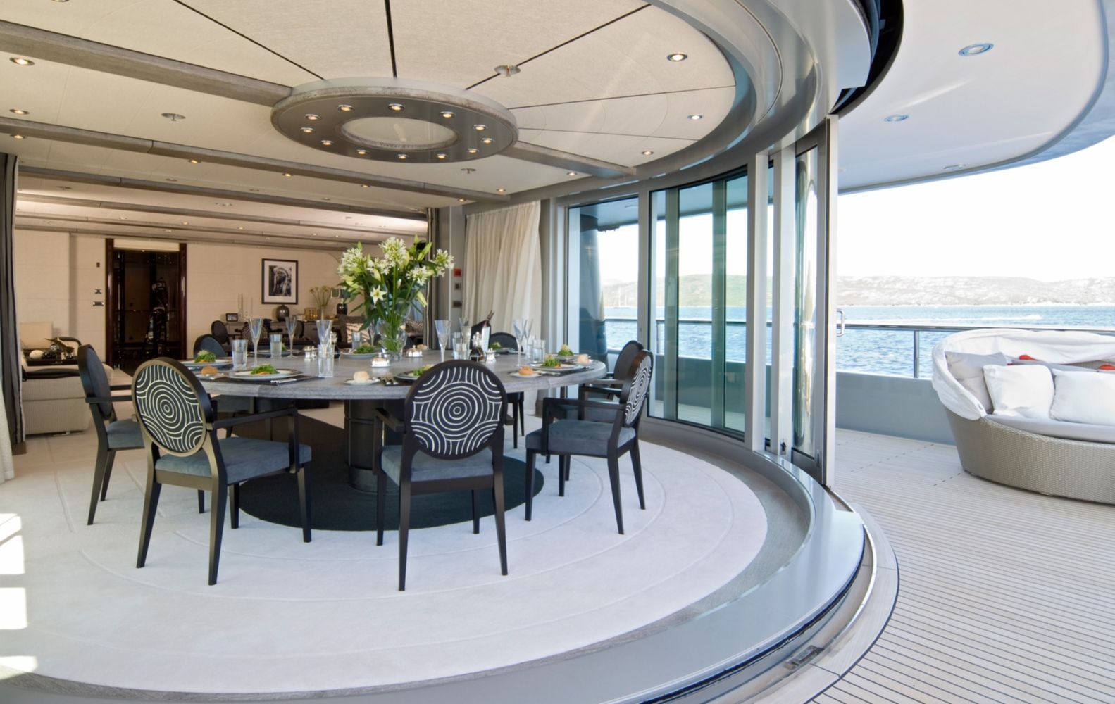 Slipstream's interior layout sleeps up to 12 guests in 7 rooms, including a master suite, 1 VIP stateroom, 2 double cabins and 2 twin cabins. She is also capable of carrying up to 15 crew onboard to ensure a relaxed luxury yacht experience. Timeless styling, beautiful furnishings and sumptuous seating feature throughout to create an elegant and comfortable atmosphere.